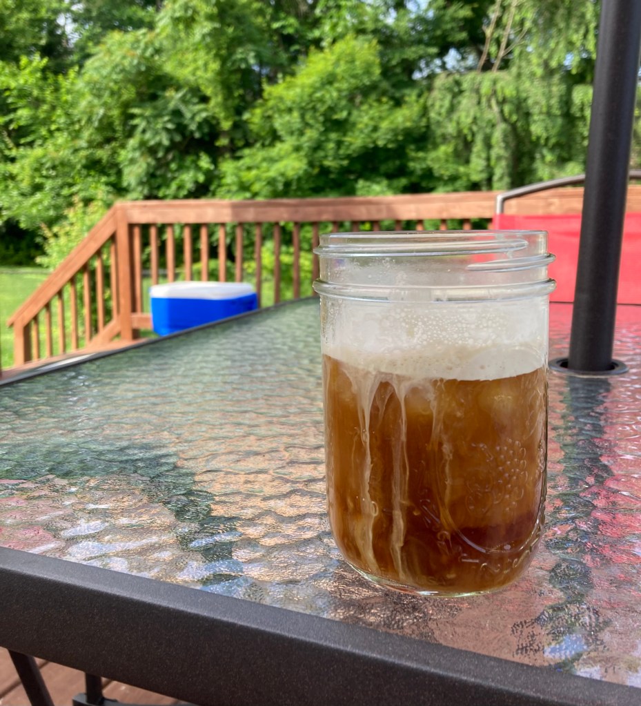 An iced Nespresso Americano with whipped cream on a warm, late spring morning.