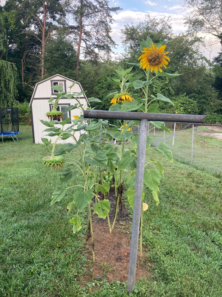 Naturally this was the year I decided to start gardening. I don’t regret putting in the yard work, though the weather wound up throwing us a curveball. When I was tearing up the lawn in early April, creating a bed between two retired clothesline posts, I wasn’t thinking how this pesky red clay soil would feel when parched. The soil itself posed enough of a challenge. I quickly learned why so many people use raised beds instead of growing anything in the ground here. Still I planted my seeds, bulbs, and a few starters, then waited to see what would happen. May brought many delightful sprouts. And then in June, just when my chard and sunflowers were beginning their abundance, it stopped raining. So frustrating.
